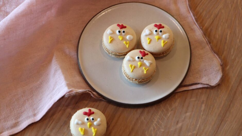 - Die Macarons 30 Minuten bei Raumtemperatur trocknen lassen, bis sie eine Haut bilden.