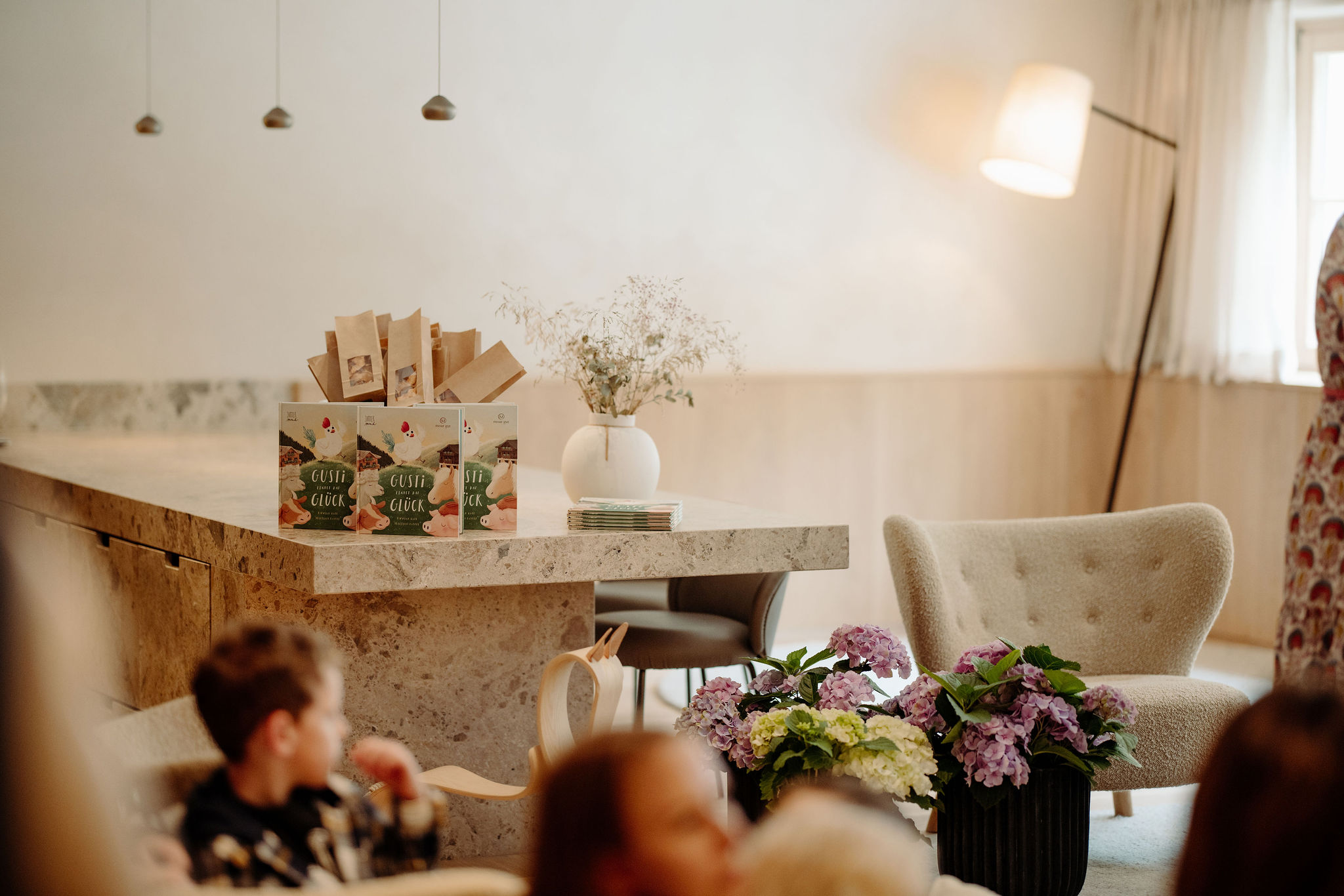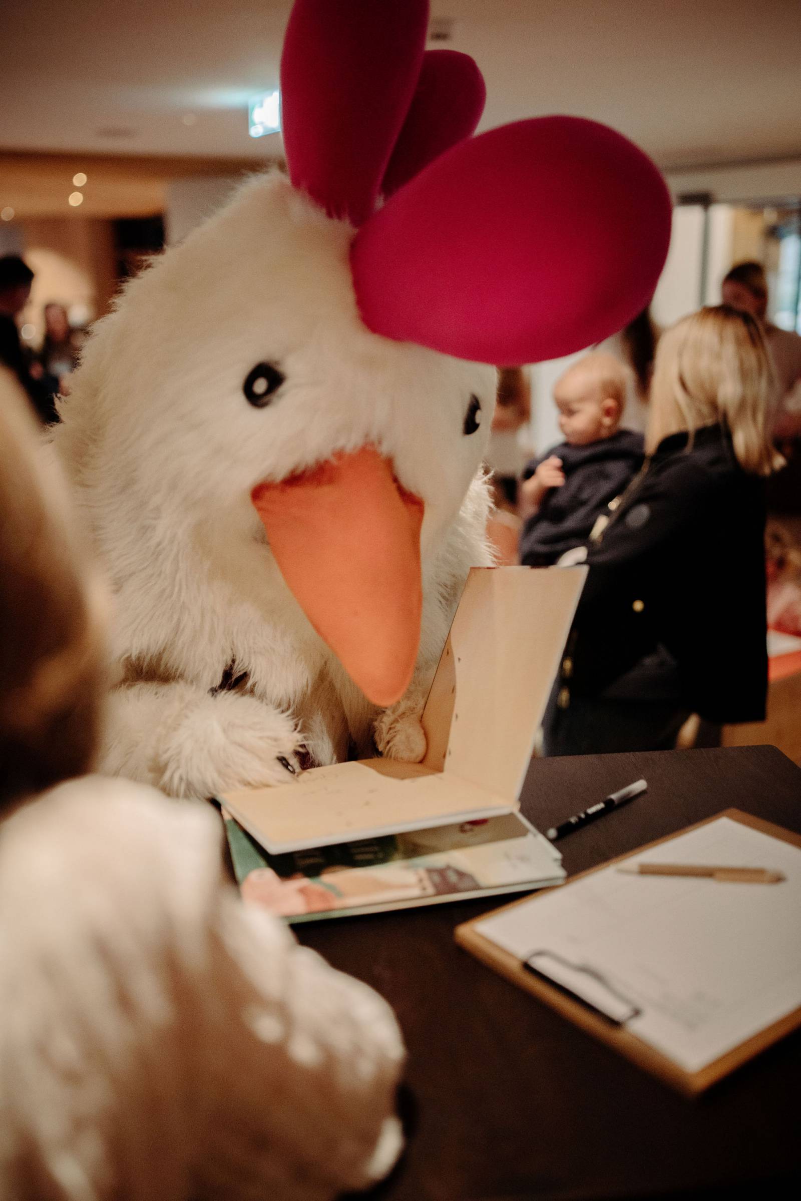 In Zusammenarbeit mit derm Jupitermondverlag, der Autorin Annika Klee und der Illustratorin Marielle Rusche haben wir am Samstag, den 28.09.2024 unser erstes Kinderbuch released. Staunende Kinderaugen, gespitzte Öhrchen und ein lautes „Kikeriki“ tönte durch die Moar Gut Lobby. Ein Bilderbuchkino mit einer Lesung von Annika Klee, ein anschließender Reimworkshop, gemeinsame Kreativzeit und die persönliche Buchsignatur von Gusti machten die Release Party zu einem besonderen Highlight.