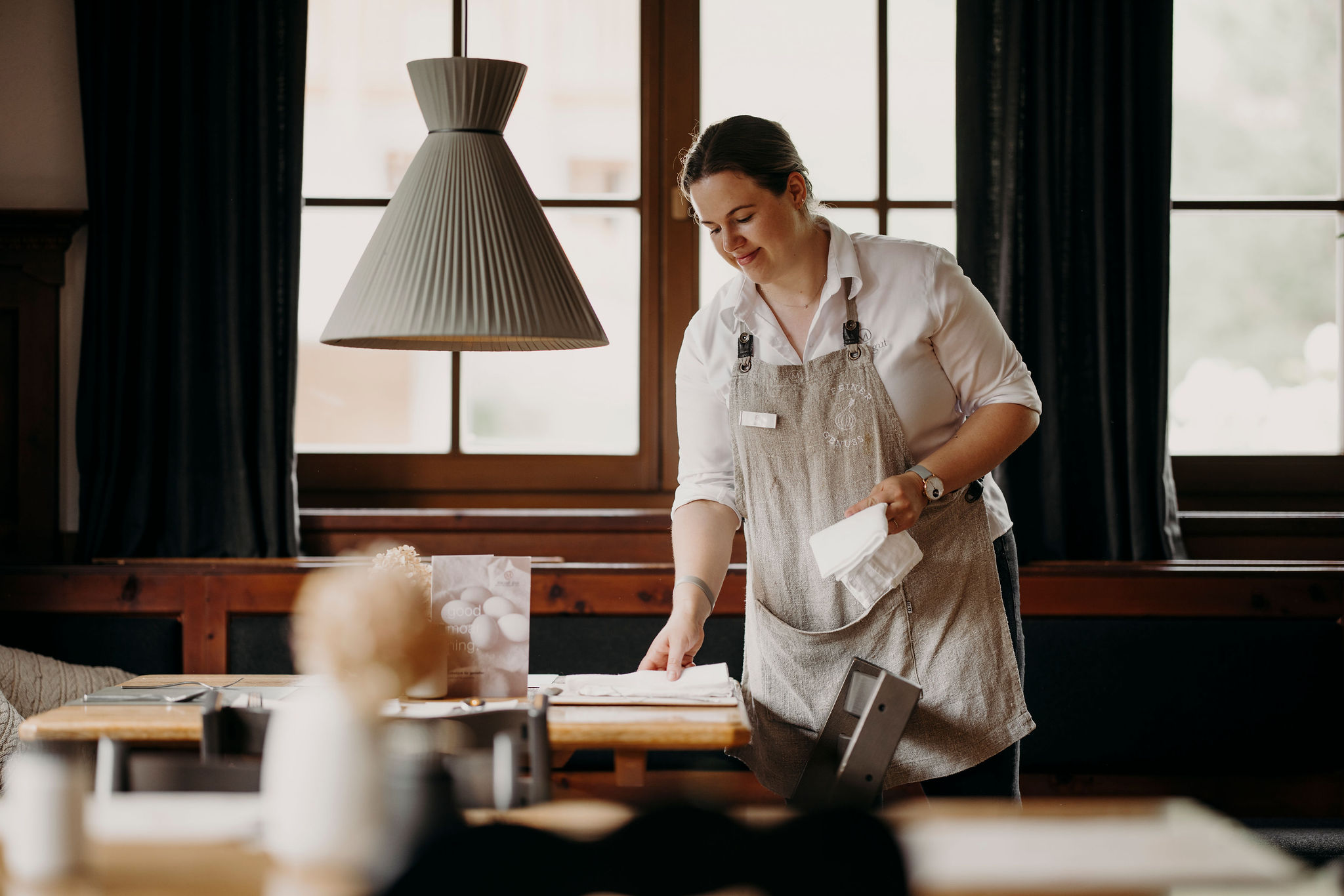 Ich heiße Lisa, bin 27 Jahre alt und komme ursprünglich aus Saalfelden. Seit zehn Jahren wohne ich schon in Großarl, bin verheiratet und habe zwei wunderbare Kinder. Zwar habe ich Masseurin gelernt und diesen Beruf auch ausgeübt, arbeite nun aber seit Juni 2024 im Frühstücksservice hier am Moar Gut. Ich bin ein sehr offener Mensch, der gerne lacht, die Natur genießt und unter Leuten ist.