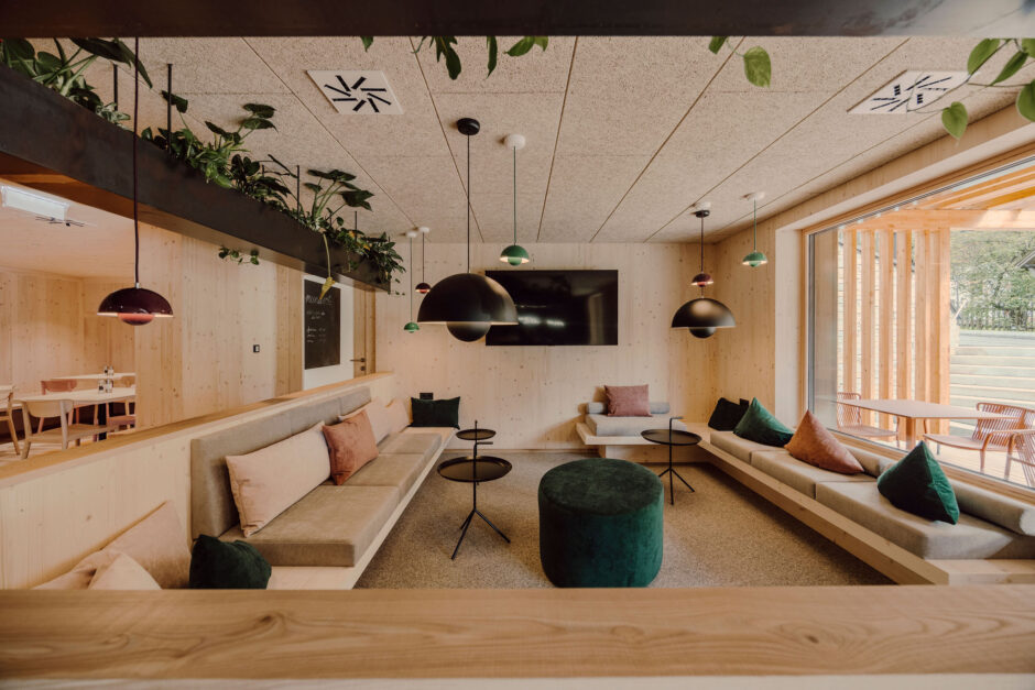 Das mundORT ist großzügig und lichtdurchflutet gestaltet. Unterschiedliche gemütliche Aufenthaltsbereiche stehen den Mitarbeiter:innen für die Pause zur Verfügung. Eine eigene Bar mit frischen Getränken, ein Buffetbereich für die Mahlzeiten und gemütliche Speisebereiche laden zum Verweilen ein.