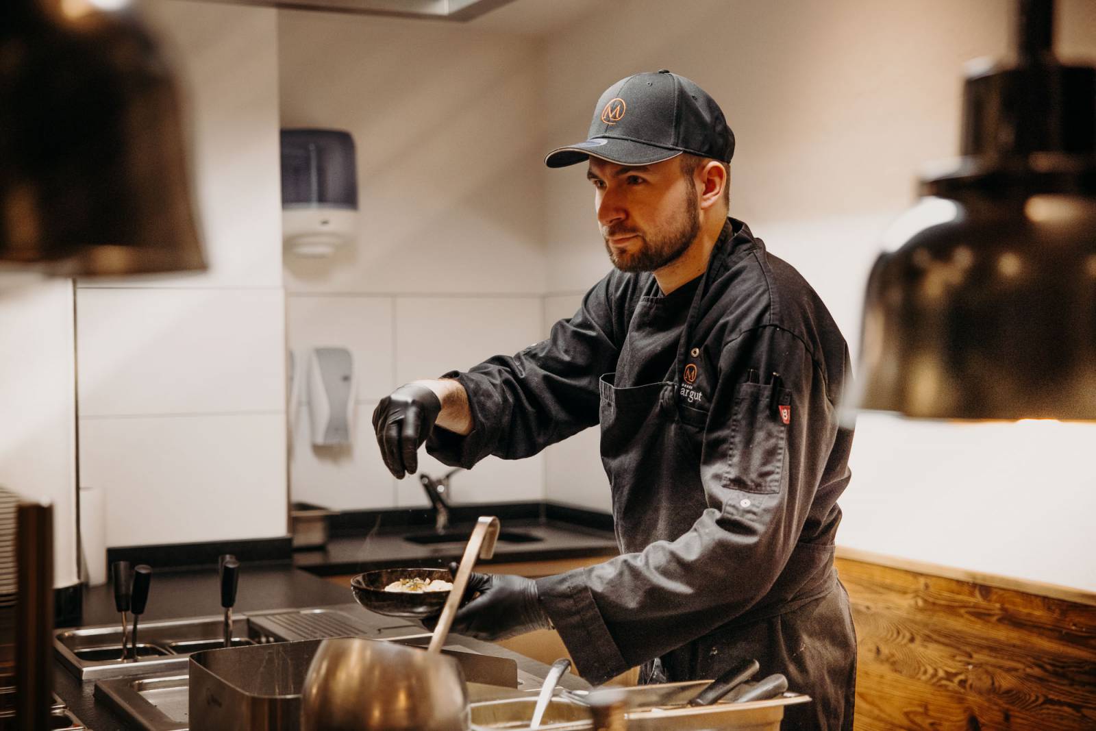 Seit Sommer 2024 verköstigen wir unser Team im neuen Mitarbeiterrestaurant mundORT. Günther, unser Koch im Mitarbeiterrestaurant, zaubert täglich zum Frühstück, Mittag- und Abendessen die besten Gerichte für unser Team. Denn vollwertiges und gutes Essen ist das A und O für einen gelungenen Arbeitstag.