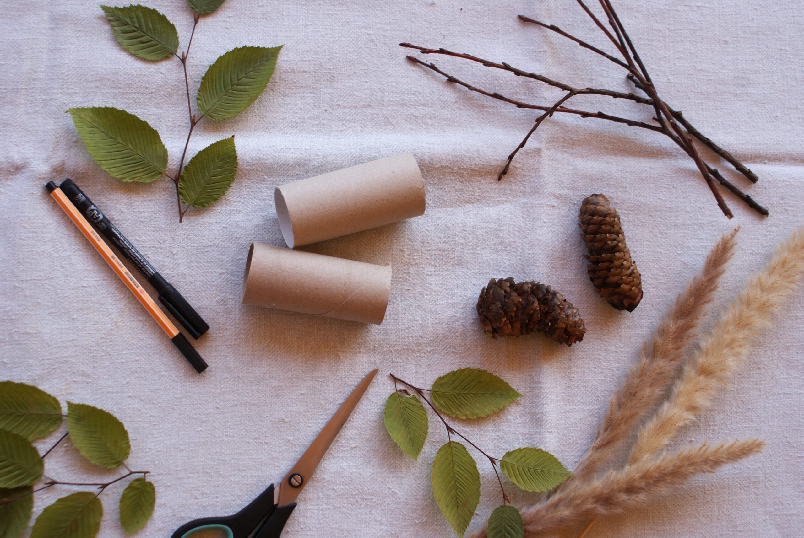 – Blätter, Zweige, Äste oder Zapfen ankleben