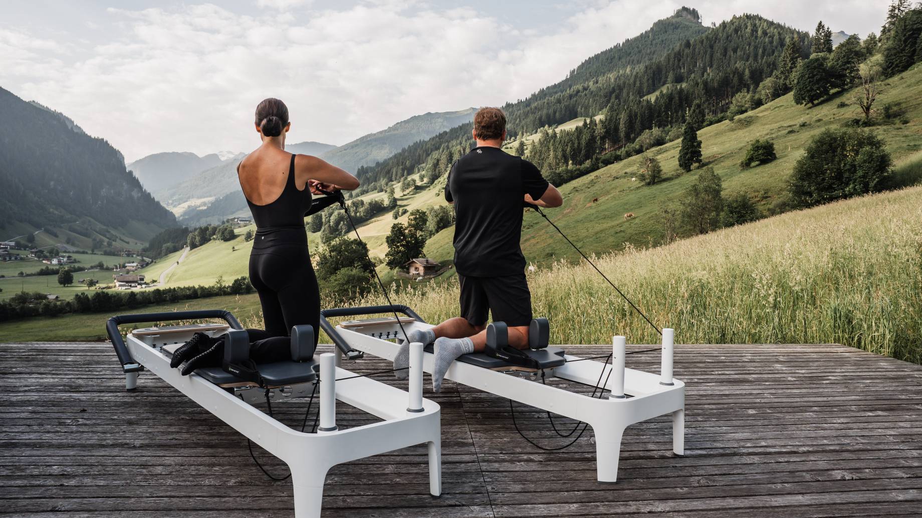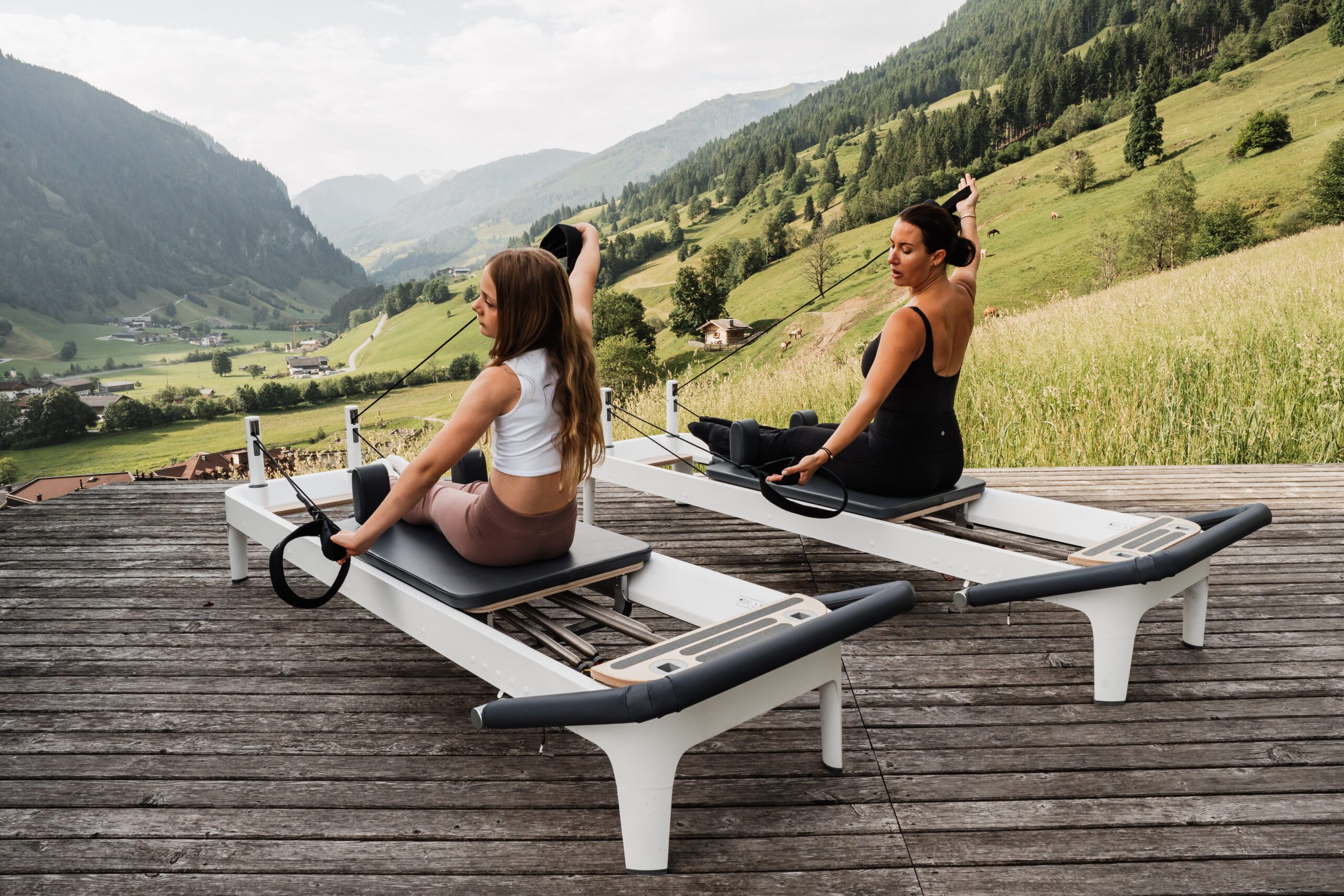 Beim Mountain Reformer Pilates sind bis zu zwei Teilnehmer:innen möglich. Auch Kinder ab einer Körpergröße von 145cm (etwa 11 Jahren) sind beim Reformer Pilates Erlebnis herzlich willkommen. Die Einheit dauert etwa 60 Minuten und wird von einer unserer professionell ausgebildeten Pilatestrainerinnen angeleitet.
