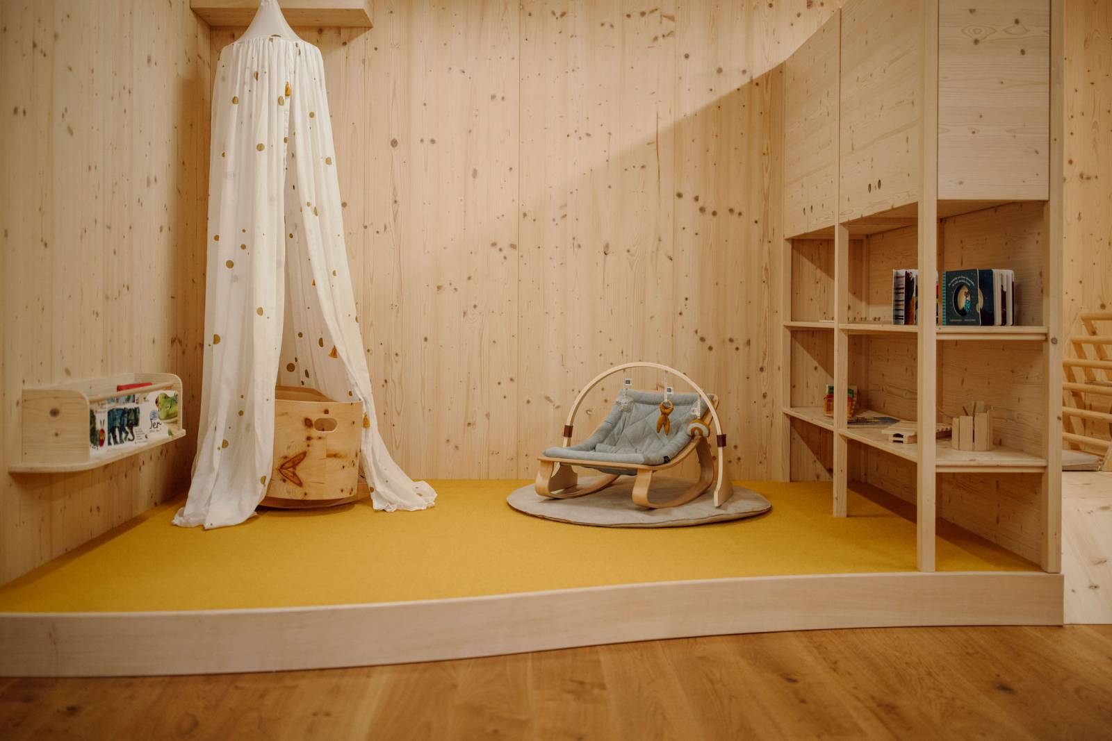 Aufgeteilt auf zwei Stockwerke, dem Luftschloss und dem Erdreich, erleben Familien im Urlaub unvergessliche gemeinsame Momente. Ob beim Klettern, Toben, Springen oder Lesen. Ein abwechslungsreiches Angebot wartet im Eltern-Kind-Bereich auf die Familien.