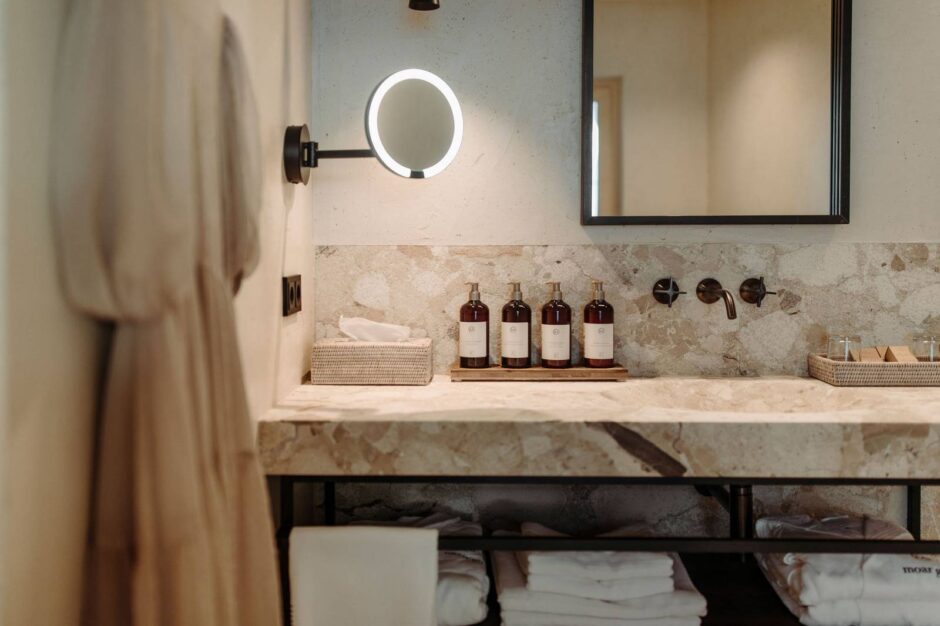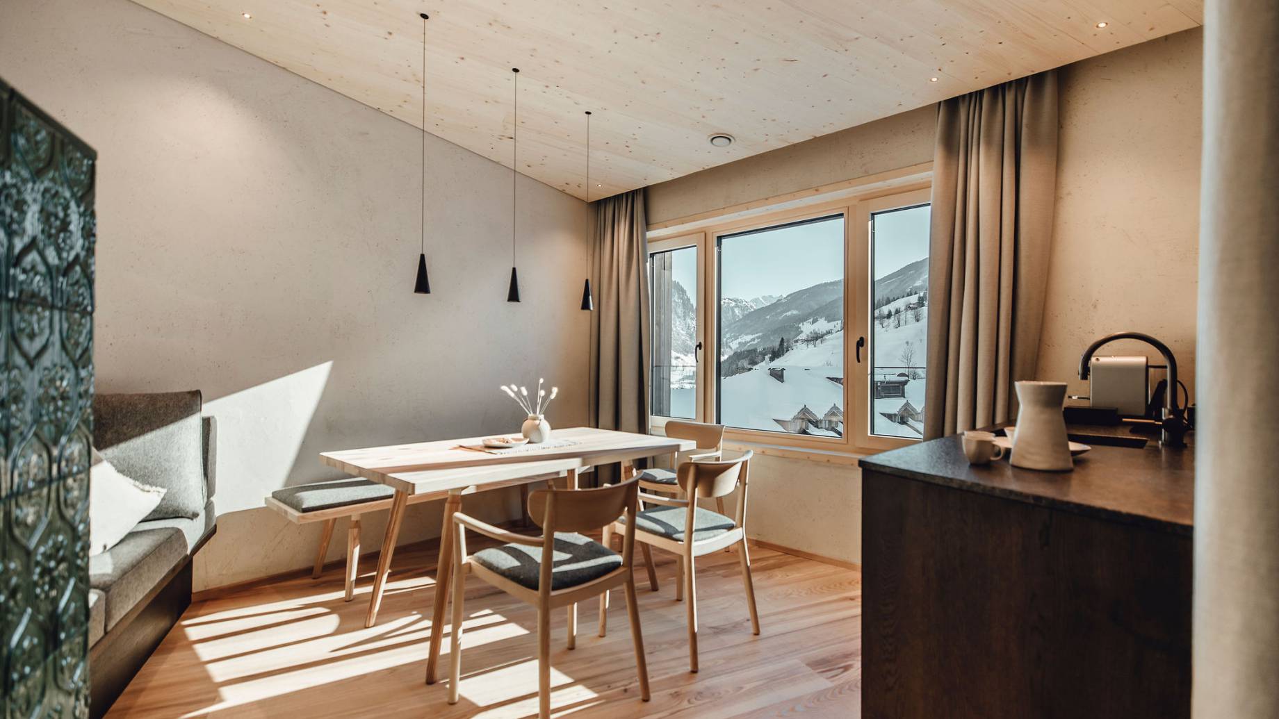 Die Natursuiten sind mit viel Liebe zum Detail ausgestattet. Nachhaltigkeit steht dabei im Mittelpunkt. Aus den Wäldern der Region stammt das naturbelassene Holz, wie Zirbe oder Fichte, welches für ein wohltuendes Raumklima sorgt. Hochwertige Textilien, wie Leinen oder Loden, laden zum Entspannen ein. Die Steinelemente setzen vor allem im Badezimmer besondere Akzente und spiegeln den luxuriösen alpinen Charme wider.
