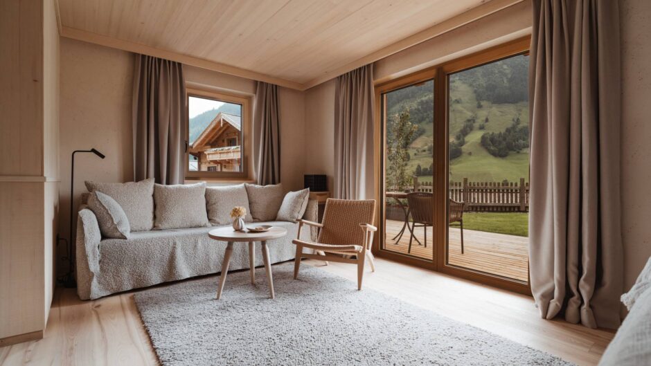 Unsere neu gestalteten Gartensuiten beeindrucken, wie der Name schon verrät, mit einem eigenen privaten Garten, welcher durch natürliche Bepflanzung abgetrennt ist. Zudem lädt die freistehende Badewanne auf der Terrasse zu gemütlichen Stunden ein. Ein neues Gefühl von Familienurlaub in den Bergen.