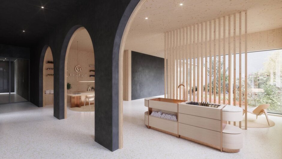 Beim Betreten des neuen Wellnessbereiches erwartet einen ein lichtdurchfluteter Empfangsbereich mit eigener SPA Rezeption. Gemütliche Sitzmöglichkeiten laden sogleich zum Ankommen und Verweilen ein. Von einer/einem Masseur:in oder Kosmetiker:in abgeholt, geht es in einen der edlen Behandlungsräume. Die neuen Räumlichkeiten sind auf das Wesentliche reduziert und bieten viel Platz für Erholung und Entspannung. Große Fensterfronten sorgen für viel Licht in den Räumen. Auch hier wurden reine Naturmaterialien, wie zum Beispiel heimisches Fichtenholz, verwendet.