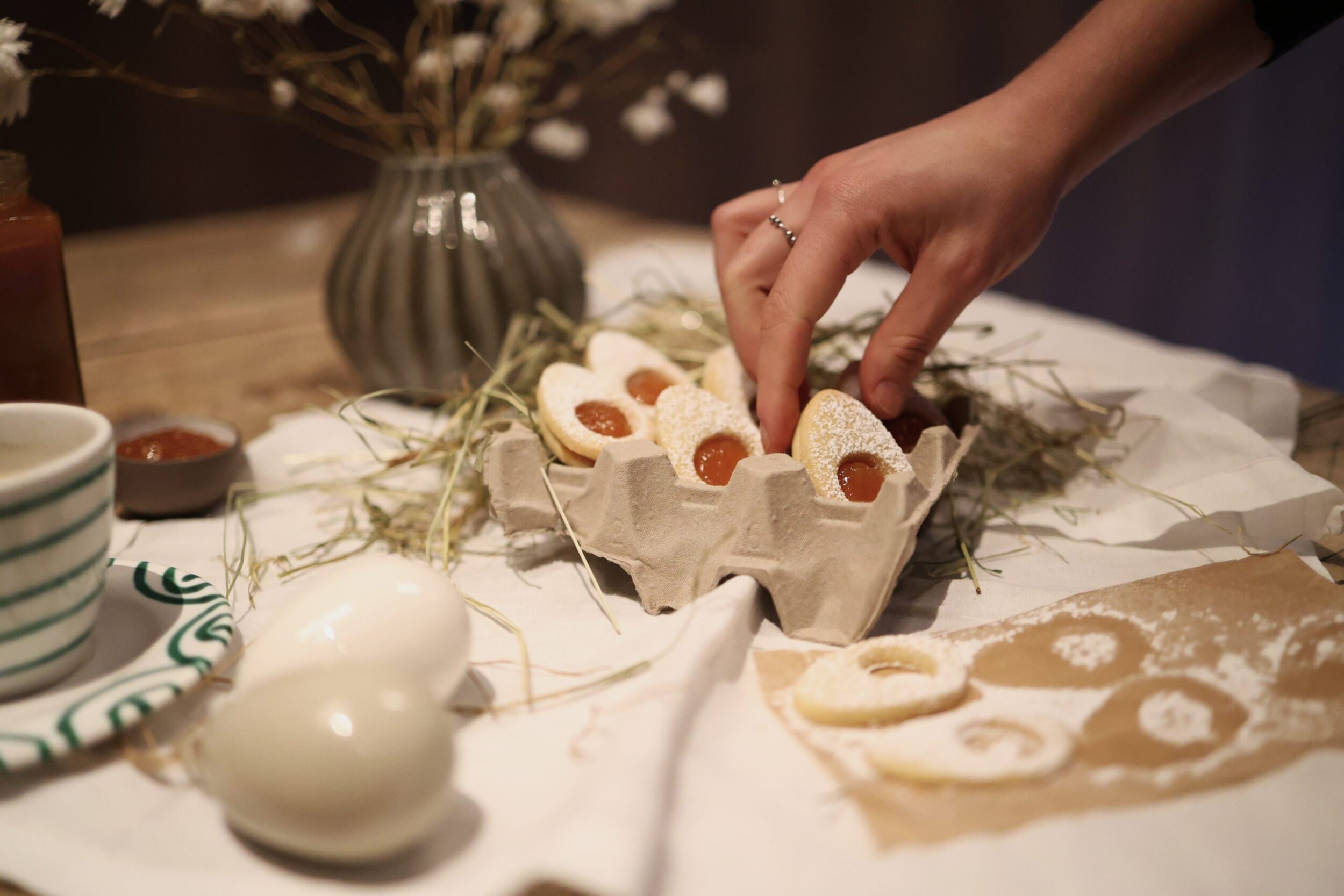- Zum Schluss jeweils zwei verschiedene Kekse zusammensetzen.