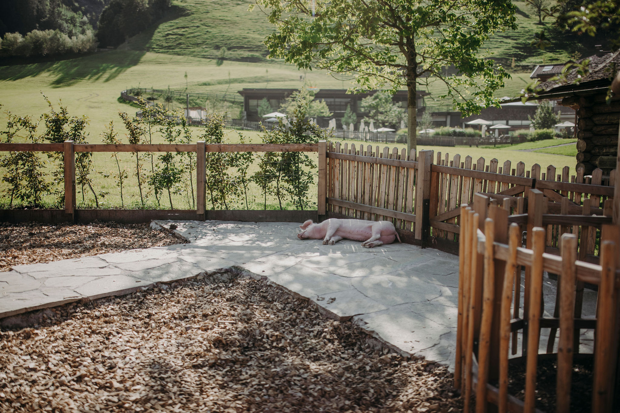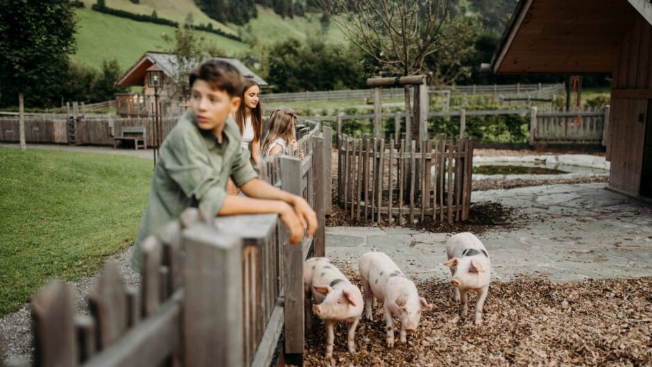 Zu meinen Lieblingsbeschäftigungen zählt auf alle Fälle schlafen. Aber natürlich auch fressen, schlammbaden und mit meinen Geschwistern spielen. Aber das Beste hier am Moar Gut ist die Tierpatenschaft. Jede Familie kann sich nämlich für die Urlaubszeit ein Tier aussuchen, um welches sie sich kümmern. Entweder ein Pferd, ein Hase, ein Alpaka oder eben mich. Ein Schweinchen. Dann bekomme ich von den Kindern immer ein spezielles Futter, das ich besonders gerne mag. Als Dank bekommt der ein oder andere auch mal meinen feuchten Rüssel zu spüren. Ich habe nämlich keine Nase so wie ihr, sondern einen Rüssel.