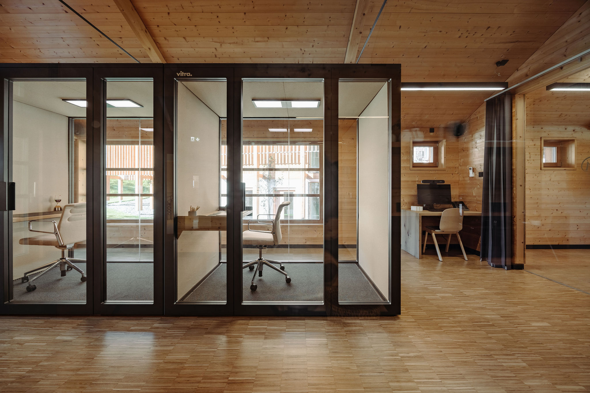 - Ruhige Arbeitsplätze mit Tageslicht in den neuen schallgeschützten Talkys von VITRA