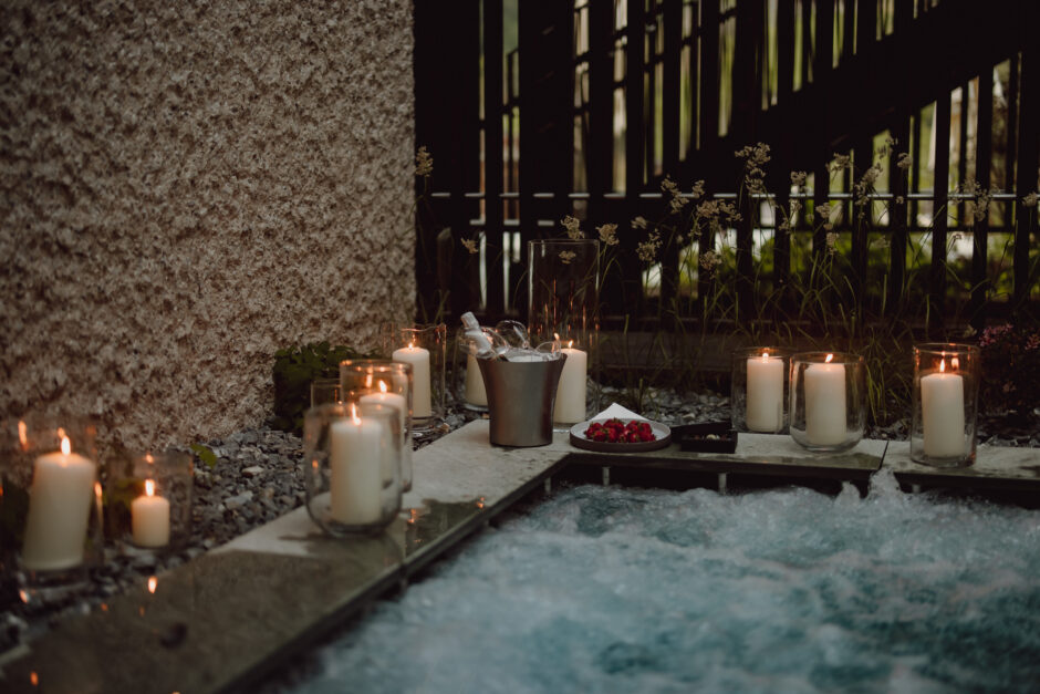 Ungestörte Zeit zu zweit genießen und sich im Natur Spa voll und ganz entspannen. Wir sorgen für die passende Atmosphäre, dekorieren unseren Whirlpool liebevoll und stellen unseren Spa Bereich exklusiv zur Verfügung. Der gekühlte Champagner, Moar Gut Pralinen und eine süße Obstplatte warten auf euch.