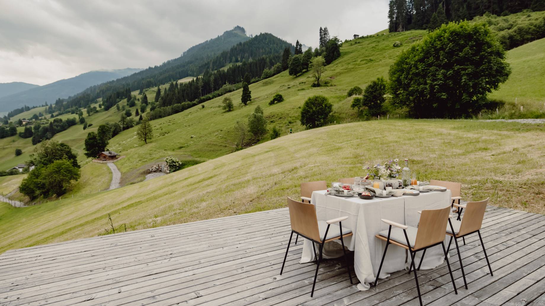 Our panorama platform, also known as the yoga platform, is the perfect place to enjoy the view of the surrounding mountains. The unique view of the Keeskogel makes the experience unforgettable. A table is festively decorated for you and only the best regional delicacies are served. Start the day comfortably and enjoy the unique mountain panorama.