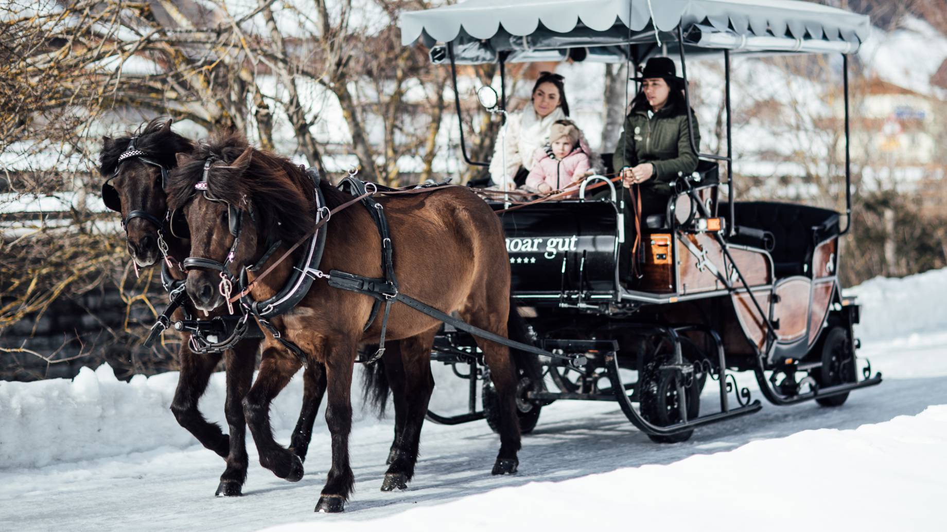 All you can hear is the clattering of hooves in the snow and the snorting of our Icelanders. An idyllic and relaxed ride in your own Moar Gut carriage through the snowy winter landscape of Grossarltal. Simply take a seat and enjoy the beautiful winter landscape.