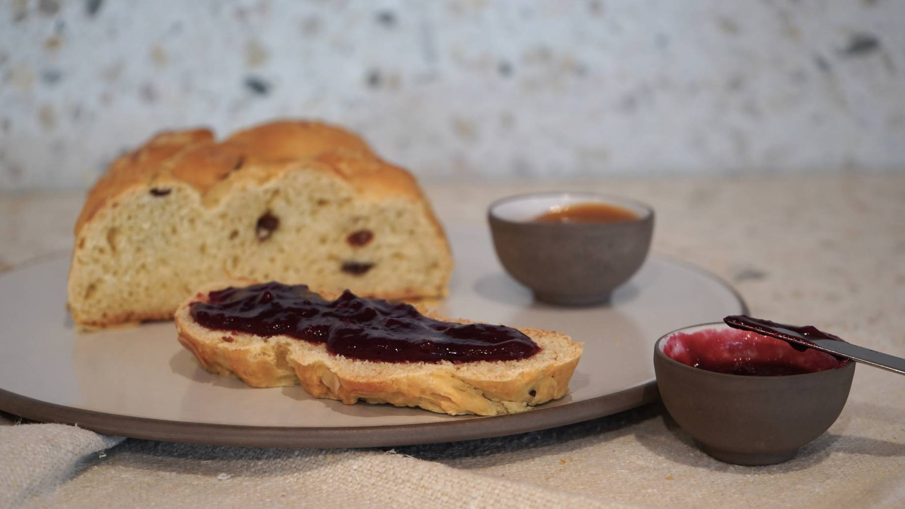 - Divide the dough into three portions and shape them into long strands. Braid them into a loaf and place it on a baking tray lined with baking paper. Let it rise again at room temperature for 30 minutes.