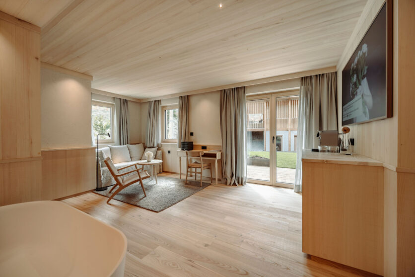Unsere Familiensuiten am Moar Gut vereinen zeitlose Eleganz mit stilvoller Großzügigkeit und schaffen einen Rückzugsort, der Ruhe und Geborgenheit harmonisch verbindet. Edle Materialien, durchdachtes Design und der Blick in die beeindruckende Salzburger Bergwelt machen jeden Aufenthalt zu einem besonderen Wohnerlebnis.